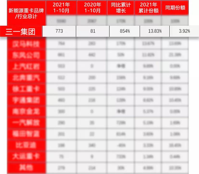 最新数据显示,今年1-10月,国内新能源重卡总销量5590台,好体育投注网站新能源重卡累计销量773台,同比增长约854%,累计市占率达到13.83%,成为国内新能源重卡市场的销量冠军。