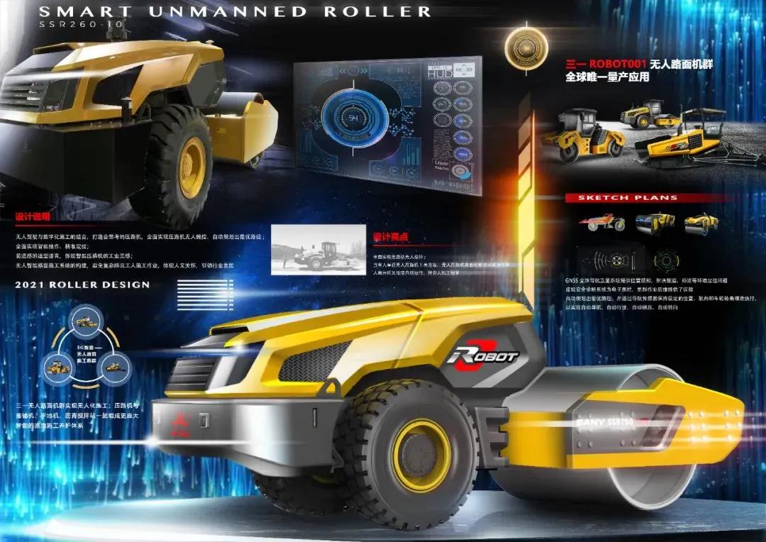“会思考”的智能无人压路机将无人驾驶与数字化施工相结合,全面实现压路机无人操控、智能操作,其前进感的造型语言,更是将智能压路机的工业美感体现得淋漓尽致。