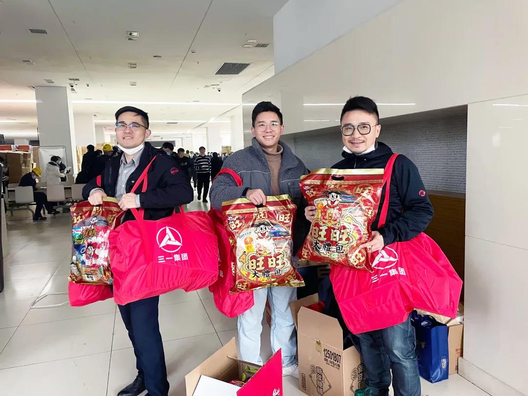 工程车辆事业部的梁巍然抱着满满大礼包,喜笑颜开。“公司把过年吃的坚果、红枣、糖果等全都备齐了,又可以过一个舒心的年了。”