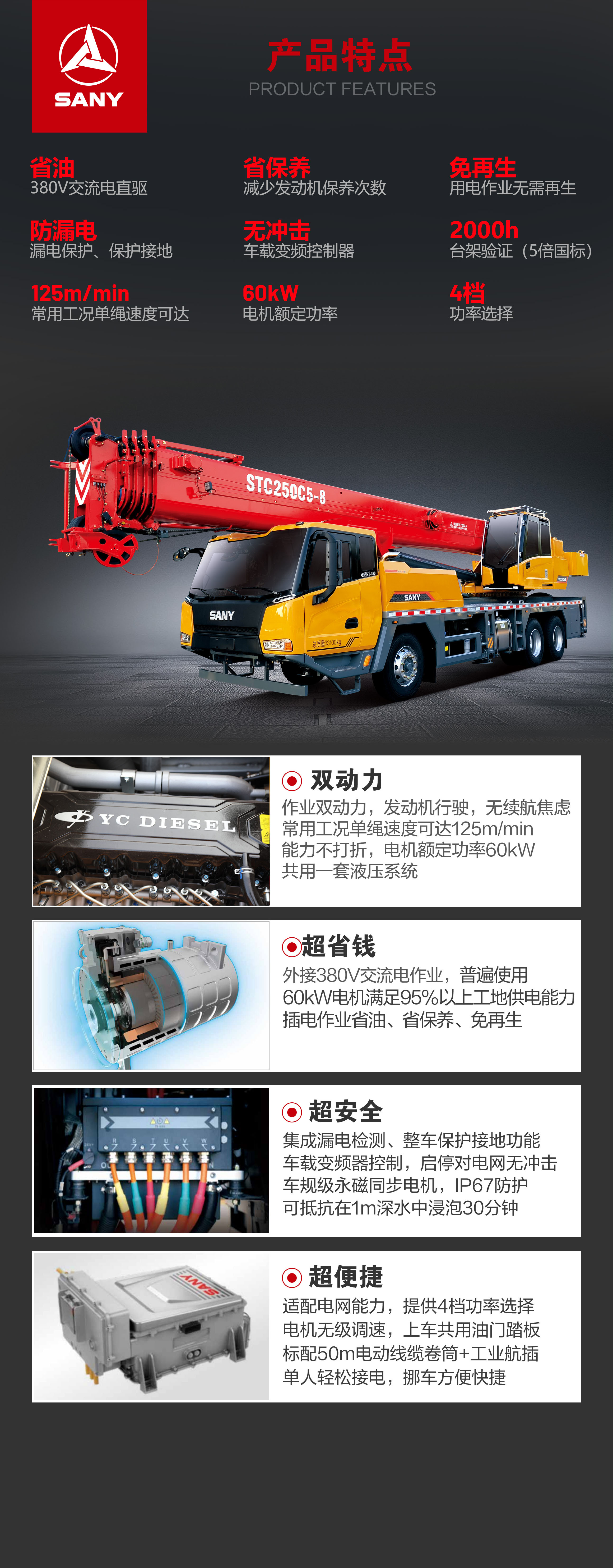 外接380V交流电作业,插电作业省油费、省保养、免再生