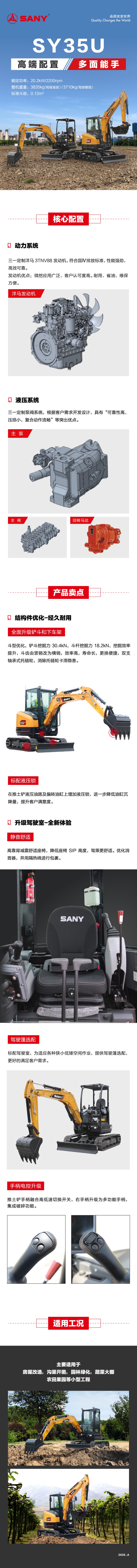 SY35U 国四机围绕“新动力”、“新造型”、“新技术”全面升级,具有“超优性能、超高效率、超长寿命、超高舒适性”等特点,可适应不同国家及客户的需求。