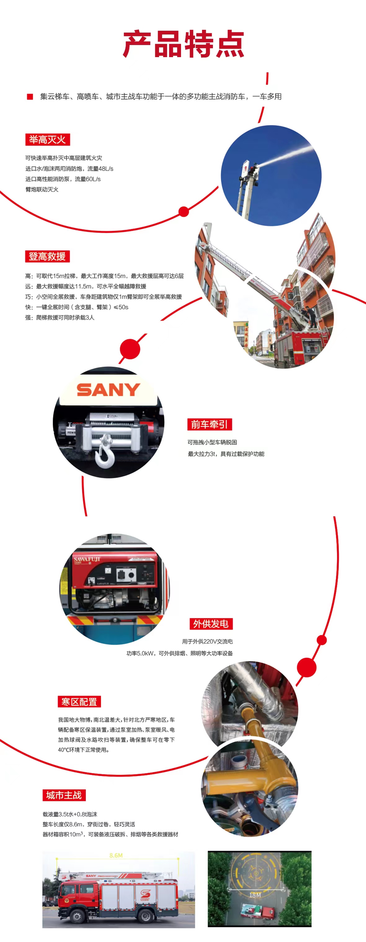 高:可取代15m拉梯,最大工作高度15m,最大救援层高可达6层