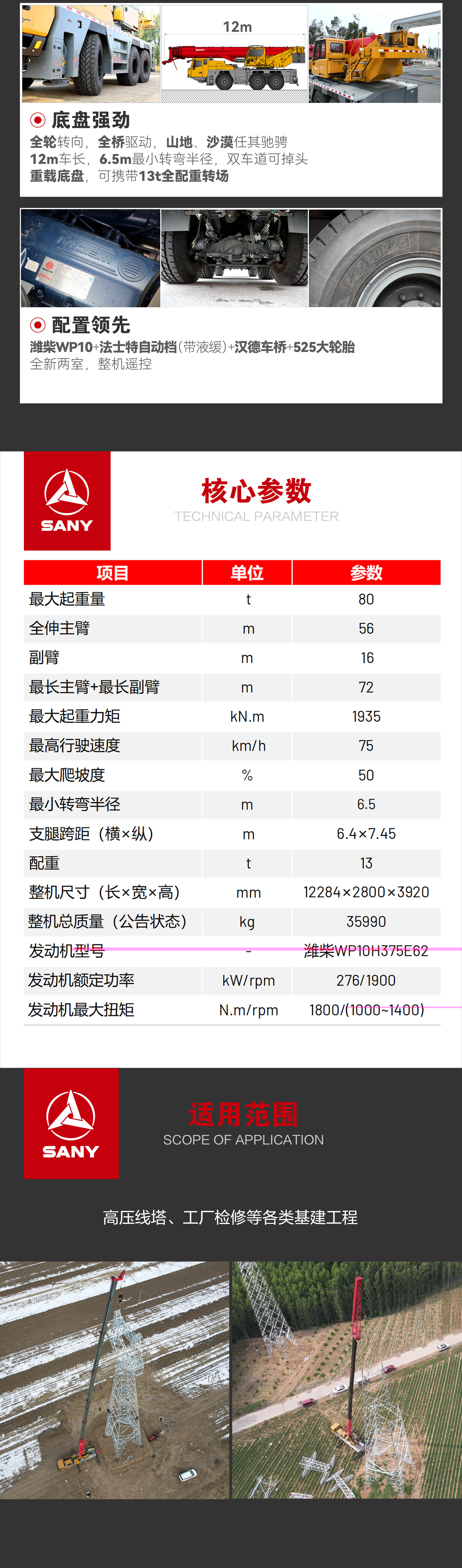满足70m高度吊装,实现国内500KV线塔99%覆盖;1000KV线塔50%覆盖