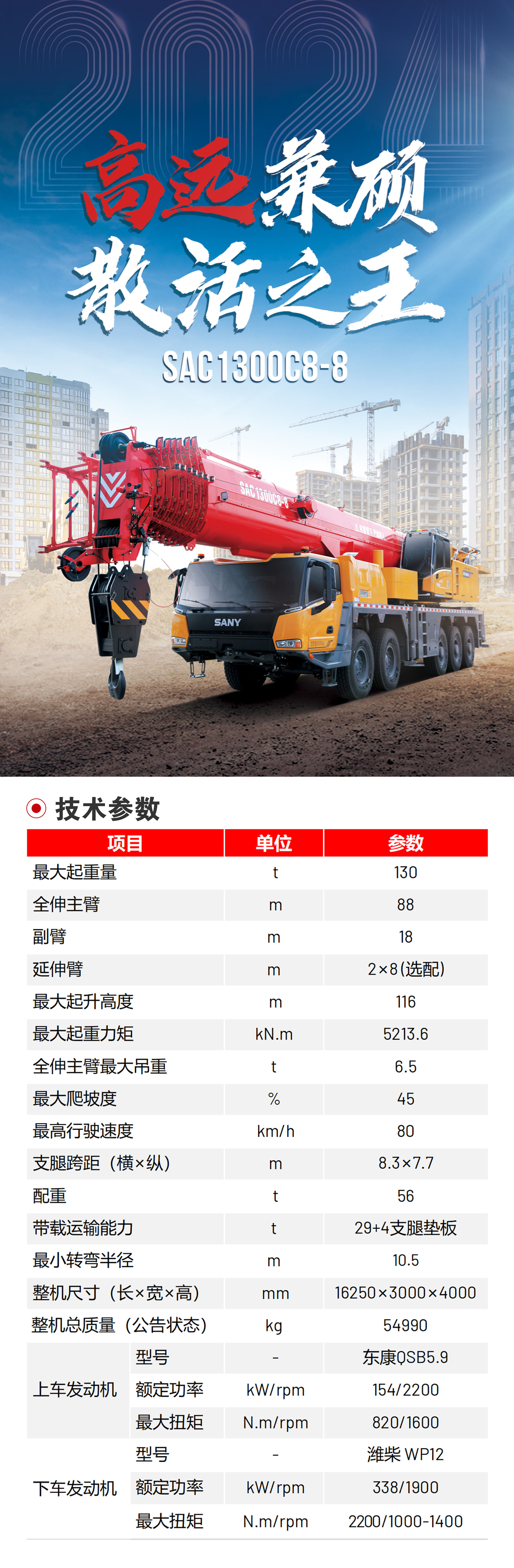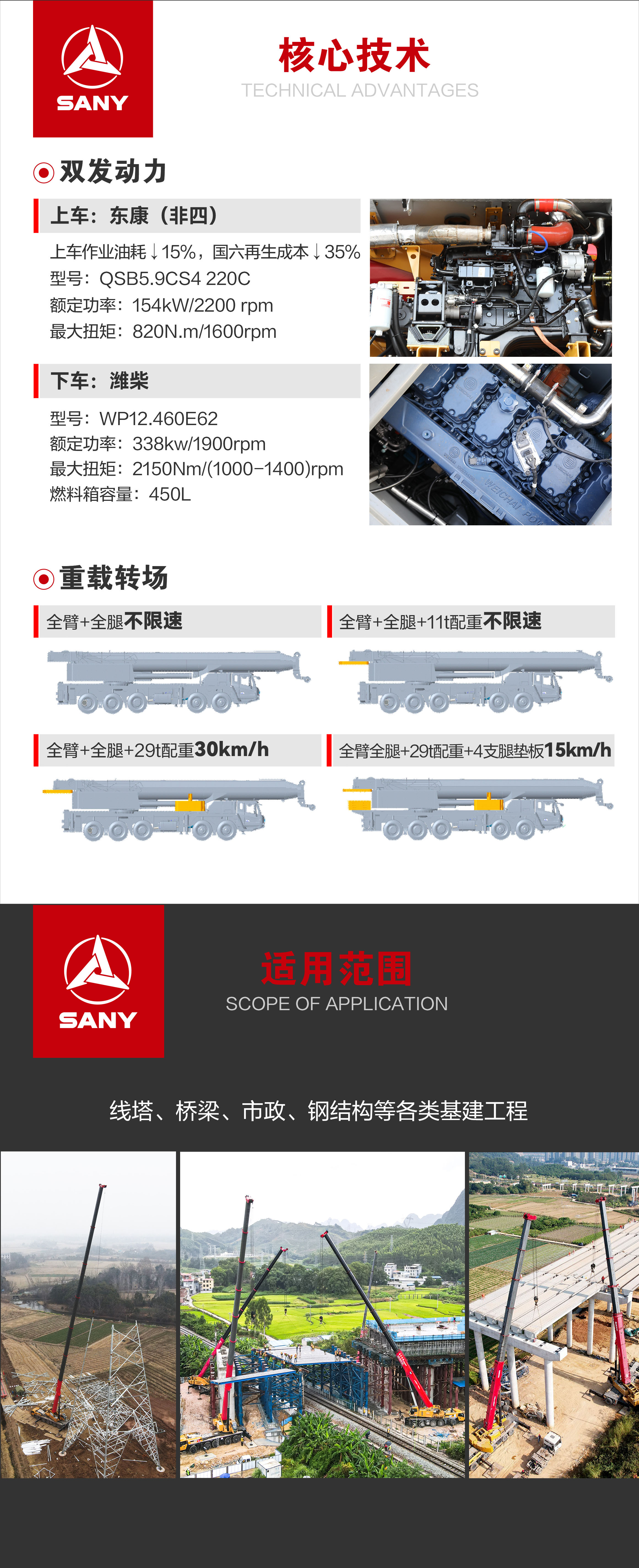主臂工况:29.3m臂吊重90t,全伸臂88m吊重6.5t